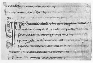 The Cathach of St. Columba is a sixth or seventh century Irish Psalter using the Latin text of the Vulgate.